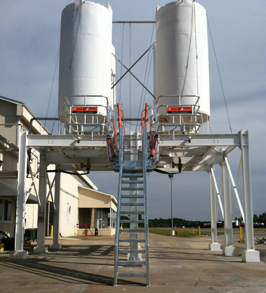 Best practice loading/unloading includes: wearing chemical-resistant clothing, gloves, splash goggles to protect eyes and skin. While Urea itself does not pose an inhalation hazard, additional respiratory projection may be required to work with liquid or gaseous ammonia. Since the operators are basically regulated to wearing a restrictive chemical suit, SafeRack recommends the use of a wider gangway and an elevating safety cage for more ergonomic access and egress.